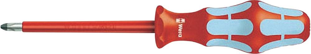 3162i PH 1 x 80 mm VDE-Edelst.-Schr.Dr. Wera VDE-Schraubendreher aus Edelstahl. Für hochwertige en. Mehrkomponentiger Kraftform Griff für hohe Arbeitsgeschwindigkeiten und besonders ergonomisches Verschrauben. Mit Sechskantabrollschutz gegen Wegrollen. Mit Griffkennzeichnung zum leichteren Finden und Sortieren des Werkzeugs. Mit Lasertip-Spitze: Microraue Oberfläche, die sich im Schraubenkopf festbeisst. Dadurch weniger Ausrutscher, weniger Aufpressdruck notwendig. Aus Edelstahl gegen Rost, dadurch auch Vermeidung von Fremdrost. Isolierte VDE Klingen, stückgeprüft bei 10.000 Volt im Wasserbad für sicheres Arbeiten bis 1.000 Volt.Ausstattung: Kraftform Plus Schraubendreher aus Edelstahl gegen unansehnlichen Flug- oder Fremdrost.Kraftform Plus Schraubendreher bringen höhere Kraftübertragung bei geringer Anstrengung und schonen das gesamte Hand-Arm-System – auch im Dauereinsatz. Dazu kommt bei der Serie VDE der Sicherheitsgedanke, der bei Wera an oberster Stelle steht. Die Qualität der Klingen übertrifft in Bezug auf Härte und Drehmomentfestigkeit die bekannten Normen. Die Sicherheit bei Arbeiten bis 1.000 Volt wird durch die Stückprüfung jedes einzelnen Werkzeugs auf Durchschlagfestigkeit bei 10.000 Volt gewährleistet. Durch die hervorragend an die Hand angepasste Form des Kraftform-Griffs werden Handverletzungen wie Blasen und Schwielen vermieden. Die für den Griff verwendeten harten Materialien (rote Griffzonen) garantieren schnelles Umgreifen ohne die Gefahr des \"\"Festklebens\"\" der Haut am Griff. Die weicheren, \"\"rutschfesten\"\" Zonen (hellblau) ermöglichen die verlustfreie Übertragung hoher Kräfte. Auch bei extremen Einsatzbedingungen ist durch die geprüfte Kaltschlagfestigkeit bei -40 °C die Sicherheit gewährleistet.Die Kennzeichnung des Griffs mit Schraubensymbol und Profilgröße erleichtert das Auffinden des Schraubendrehers in der Werkzeugtasche und am Arbeitsplatz. Der Sechskantabrollschutz verhindert lästiges Wegrollen am Arbeitsplatz.- Wie kann ich das Herausrutschen aus dem Schraubenkopf verhindern?Immer wieder passiert es, dass man beim Verschrauben aus der Schraube rutscht. Manchmal kann man dabei möglicherweise sogar in unter Spannung stehende Bauteile abrutschen. Die Spitze von Wera Lasertip-Schraubendrehern wird mit Laserstrahlen mikroskopisch fein aufgeraut. Diese raue Oberfläche \"\"beißt\"\" sich förmlich im Schraubenkopf fest. Dies vermittelt ein sicheres Gefühl, gerade wenn unter Spannung gearbeitet wird.Durch Laserbehandlung wird auf die Klingenspitze eine microraue Oberfläche mit Randhärten von bis zu 1000 Vickers eingebrannt. Sie beißt sich förmlich im Schraubenkopf fest. Der Vorteil: weniger Ausrutscher, höhere Sicherheit.Die Schraubendrehersätze werden immer mit Rack geliefert, das an der Wand befestigt werden kann. So ist ordentliche Aufbewahrung und schneller Zugriff gewährleistet.Technische Daten: Abtrieb: Kreuzschlitz PhillipsAnwendungsbereich (Schraubendreher): VDEGewicht: 58 gGriff-Durchmesser: 33 mmGrifflänge: 98 mmGröße: PH 1Klingen-Ausführung: RundklingeKlingenlänge: 80 mmMaterial (LOV): EdelstahlProduktabmessung, Länge: 178 mmSchraubendreher-Art (Kategorisierung): Kreuzschlitz-SchraubendreherSchraubendreher-Besonderheiten: Mehrkomponentengriff, EdelstahlLieferumfang: 3162i PH 1 x 80 mm