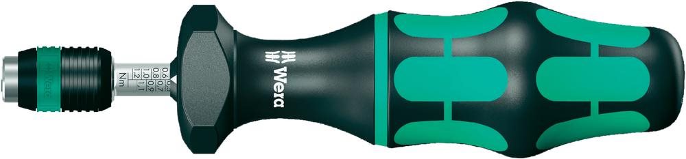 Wera Drehmoment-Schraubendreher. Variable Drehmoment-Einstellmöglichkeit mit hoher Präzision. Einfaches Einstellen des gewünschten Drehmomentwertes ohne Spezialwerkzeug. Gut ablesbarer Skalenwert; hörbares Klick-Signal. Rapidaptor-Schnellverschlusstechnik für schnellen Bitwechsel. Unbegrenztes Drehmoment zum Lösen festsitzender Schrauben. Mehrkomponenten-Kraftform-Griff mit Hart- und Weichzonen für hohe Arbeitsgeschwindigkeiten bei gleichzeitiger Schonung der Hand.