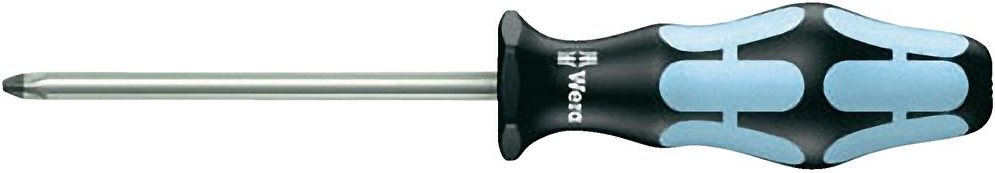 3350 PH 2 x 100 mm Edelstahl-Schraubend. Wera Schraubendreher aus Edelstahl. Für hochwertige en. Mehrkomponentiger Kraftform Griff für hohe Arbeitsgeschwindigkeiten und besonders ergonomisches Verschrauben. Mit Sechskantabrollschutz gegen Wegrollen. Mit Griffkennzeichnung zum leichteren Finden und Sortieren des Werkzeugs. Mit Lasertip-Spitze: Microraue Oberfläche, die sich im Schraubenkopf festbeisst. Dadurch weniger Ausrutscher, weniger Aufpressdruck notwendig. Aus Edelstahl gegen Rost, dadurch auch Vermeidung von Fremdrost.Ausstattung: Kraftform Plus Schraubendreher aus Edelstahl gegen unansehnlichen Flug- oder Fremdrost. Kraftform Plus Schraubendreher bringen höhere Kraftübertragung bei geringer Anstrengung und schonen das gesamte Hand-Arm-System – auch im Dauereinsatz. Durch die hervorragend an die Hand angepasste Form des Kraftform-Griffs werden Handverletzungen wie Blasen und Schwielen vermieden. Die für den Griff verwendeten harten Materialien (schwarze Griffzonen) garantieren schnelles Umgreifen ohne die Gefahr des \"\"Festklebens\"\" der Haut am Griff. Die weicheren, \"\"rutschfesten\"\" Zonen (hellblau) ermöglichen die verlustfreie Übertragung hoher Kräfte. Die Kennzeichnung des Griffs mit Schraubensymbol und Profilgröße erleichtert das Auffinden des Schraubendrehers in der Werkzeugtasche und am Arbeitsplatz. Der Sechskantabrollschutz verhindert lästiges Wegrollen am Arbeitsplatz.- Wie kann ich das Herausrutschen aus dem Schraubenkopf verhindern?Immer wieder passiert es, dass man beim Verschrauben aus der Schraube rutscht. Manchmal kann man dabei möglicherweise sogar in unter Spannung stehende Bauteile abrutschen. Die Spitze von Wera Lasertip-Schraubendrehern wird mit Laserstrahlen mikroskopisch fein aufgeraut. Diese raue Oberfläche \"\"beißt\"\" sich förmlich im Schraubenkopf fest. Dies vermittelt ein sicheres Gefühl, gerade wenn unter Spannung gearbeitet wird.Durch Laserbehandlung wird auf die Klingenspitze eine microraue Oberfläche mit Randhärten von bis zu 1000 Vickers eingebrannt. Sie beißt sich förmlich im Schraubenkopf fest. Der Vorteil: weniger Ausrutscher, höhere Sicherheit.Die Schraubendrehersätze werden immer mit Rack geliefert, das an der Wand befestigt werden kann. So ist ordentliche Aufbewahrung und schneller Zugriff gewährleistet.Technische Daten: Abtrieb: Kreuzschlitz PhillipsAnwendungsbereich (Schraubendreher): WerkstattGewicht: 95 gGriff-Durchmesser: 37 mmGrifflänge: 105 mmGröße: PH 2Klingen-Ausführung: RundklingeKlingenlänge: 100 mmMaterial (LOV): EdelstahlProduktabmessung, Länge: 205 mmSchraubendreher-Art (Kategorisierung): Kreuzschlitz-SchraubendreherSchraubendreher-Besonderheiten: Mehrkomponentengriff, EdelstahlLieferumfang: 3350 PH 2 x 100 mm