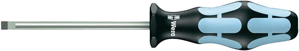 3335 0,5 x 3,0 x 80 mm Edelst.Schr.Dreh. Wera Schraubendreher aus Edelstahl. Für hochwertige en. Mehrkomponentiger Kraftform Griff für hohe Arbeitsgeschwindigkeiten und besonders ergonomisches Verschrauben. Mit Sechskantabrollschutz gegen Wegrollen. Mit Griffkennzeichnung zum leichteren Finden und Sortieren des Werkzeugs. Aus Edelstahl gegen Rost, dadurch auch Vermeidung von Fremdrost.Ausstattung: Kraftform Plus Schraubendreher aus Edelstahl gegen unansehnlichen Flug- oder Fremdrost. Kraftform Plus Schraubendreher bringen höhere Kraftübertragung bei geringer Anstrengung und schonen das gesamte Hand-Arm-System – auch im Dauereinsatz. Durch die hervorragend an die Hand angepasste Form des Kraftform-Griffs werden Handverletzungen wie Blasen und Schwielen vermieden. Die für den Griff verwendeten harten Materialien (schwarze Griffzonen) garantieren schnelles Umgreifen ohne die Gefahr des \"\"Festklebens\"\" der Haut am Griff. Die weicheren, \"\"rutschfesten\"\" Zonen (hellblau) ermöglichen die verlustfreie Übertragung hoher Kräfte. Die Kennzeichnung des Griffs mit Schraubensymbol und Profilgröße erleichtert das Auffinden des Schraubendrehers in der Werkzeugtasche und am Arbeitsplatz. Der Sechskantabrollschutz verhindert lästiges Wegrollen am Arbeitsplatz.Technische Daten: Abtrieb: SchlitzAnwendungsbereich (Schraubendreher): WerkstattGewicht: 28 gGrifflänge: 81 mmKlingen-Ausführung: RundklingeKlingen-Durchmesser: 3 mmKlingenbreite: 3 mmKlingendicke: 0.5 mmKlingenlänge: 80 mmMaterial (LOV): EdelstahlProduktabmessung, Länge: 161 mmSchraubendreher-Art (Kategorisierung): Schlitz-SchraubendreherSchraubendreher-Besonderheiten: EdelstahlLieferumfang: 3335 0,5 x 3,0 x 80 mm