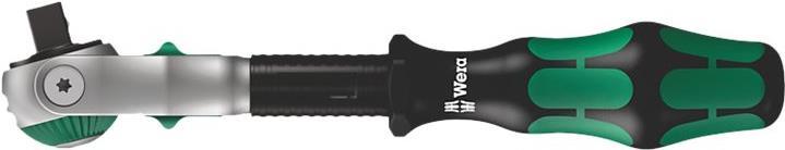 Zyklop-Ratsche mit 3/8\"-Antrieb. Die Feinverzahnung mit 72 Zähnen ermöglicht einen geringen Rückholwinkel von 5°. Der Knarrenkopf ist frei schwenkbar und kann mit dem beidseitigen Schiebeschalter in jeder Position arretiert werden. Unproblematisches Arbeiten mit viel Handfreiheit auch in sehr engen oder schwer zugänglichen Einbausituationen. Die vordefinierten Positionen 0°, 15° und 90° nach links und rechts garantieren sicheres Arbeiten ohne Abrutschen des Ratschenkopfes. In der 0°-Position kann die Ratsche mit Adapter und Bit wie ein herkömmlicher Schraubendreher verwendet werden. Die Schwungradkonstruktion trägt zur Beschleunigung des Schraubvorgangs bei. Das rotationssymmetrische Design des Kraftform-Griffs und die schnelldrehende Hülse unterstützen das schnelle Drehen. Dank der perfekt an die Hand angepassten Form des Kraftform-Griffs werden Handverletzungen wie Blasen und Schwielen vermieden. Die für den Griff verwendeten harten Materialien garantieren einen schnellen Handwechsel, ohne dass die Gefahr besteht, dass die Haut am Griff \"kleben\" bleibt. Die weicheren, \"rutschfesten\" Zonen bieten eine verlustfreie Übertragung hoher Kräfte. Für 3/8\"-Vierkant-Steckschlüsseleinsätze sowie 3/8\"-Verbinder mit Vierkantantrieb, mit Kugelsicherung.