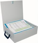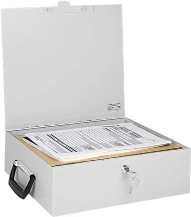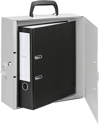 Zur sicheren Verwahrung von DIN-A4-Ordnern. Sie ist aus Stahlblech mit lichtgrauer Pulverbeschichtung gefertigt. Zum eingebauten Sicher heitsschloss werden zwei Schlüssel geliefert, deren Nummer auf dem Schloss eingraviert ist.