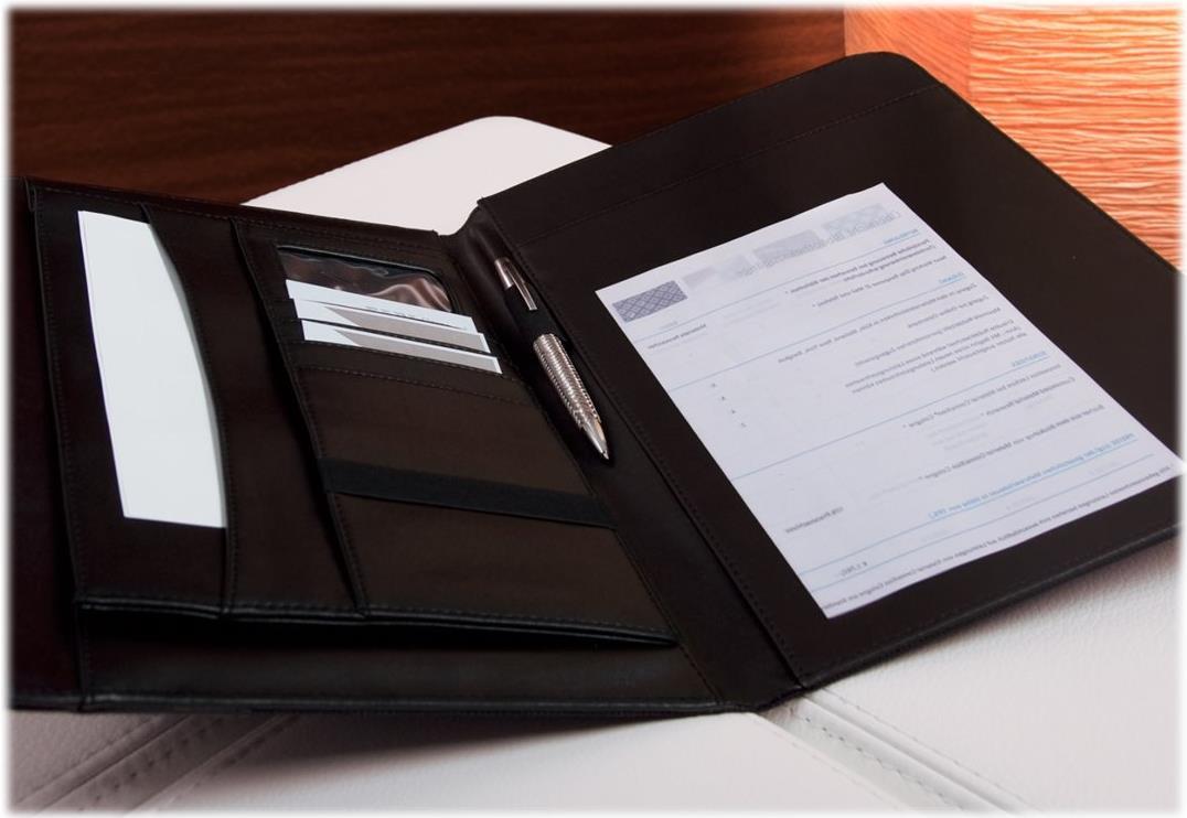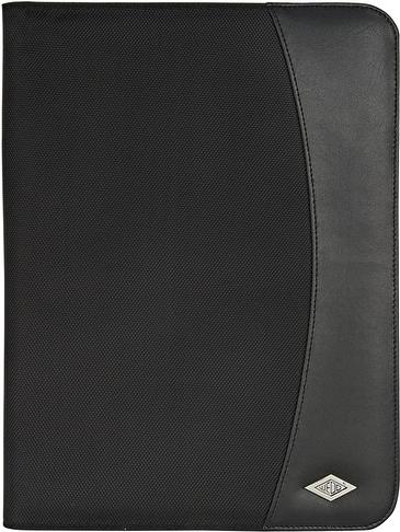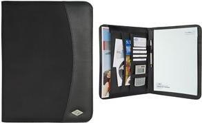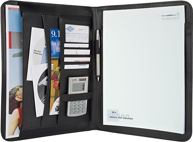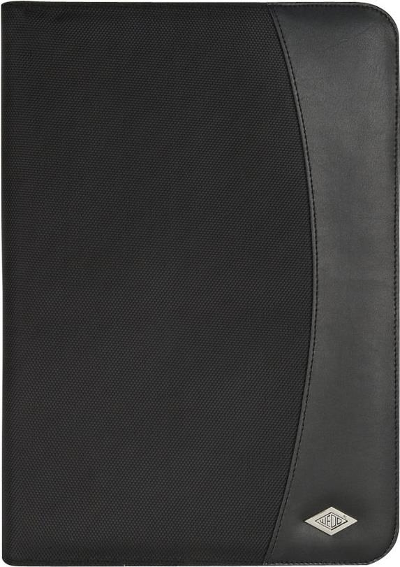 WEDO Schreibmappe Elegance für DIN A4 Format. Die Schreibmappe verfügt über ein Einsteckfach für einen A4 Schreibblock und eine Gummizugschlaufe für ein Schreibgerät. Darüber hinaus bieten ein A4 Einsteckfach, zwei kleinere Einsteckfächer, ein Sichtfenster für Visitenkarten, vier Kartenfächer und eine Gummizugschlaufe für einen Taschenrechner Platz für weitere Unterlagen. Die außergewöhnliche Kombination von hochwertigem Kunstleder und strukturiertem Nylon gibt dieser Schreibmappe aus der Elegance Taschenserie eine moderne und elegante Optik.