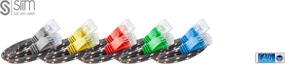 Die TOUGHpatchkabel der Marke SLIM sind eine Lösung für Verkabelungsprobleme verschiedener Art. Obwohl optisch einem Flachbandkabel recht ähnlich, erreichen die TOUGHpatchkabel die Werte der Kategorie 6 und sind somit für 10BASE-T-, 100BASE-TX- und 1000BASE-T Anwendungen, also auch Gigabit Ethernet, geeignet. Dabei haben ganze drei SLIMpatchkabel den Durchmesser eines einzigen handelsüblichen KAT6 Patchkabels. Das Kabel weist trotz der extrem dünnen Bauweise eine Verdrillung der einzelnen Adernpaare auf. Zudem besitzt es einen breiten, flexiblen Klinkenschutz sowie einen praktischen Längenaufdruck an beiden Enden und unterstützt Power over Ethernet (PoE nach IEEE802.3af und IEEE802.3at).