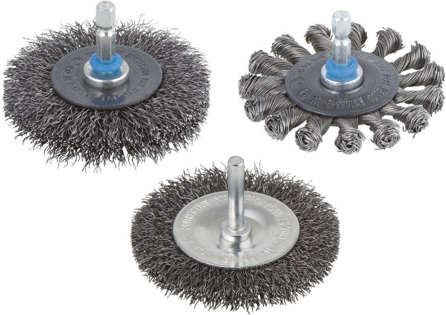 ScheibenbürstenZum Entrosten und Reinigen von Metall und Stein. Zur Vorbereitung von Löt- und Schweißarbeiten.Technische Daten: Inhalt: 1 St.