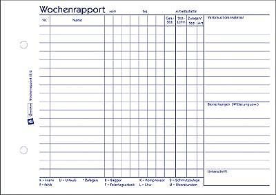 Die Bauformulare von Avery Zweckform sind unverzichtbare Helfer für Bau und Handwerk. Der Wochenrapport eignet sich besonders, um die wöchentliche Arbeitsleistung und den Materialverbrauch zu dokumentieren. Der Wochenrapport im DIN A5 Querformat beinhaltet 2 Blatt Blaupapier. Die Bauformulare von Avery Zweckform sind vorgelocht, für eine schnelle Ablage!