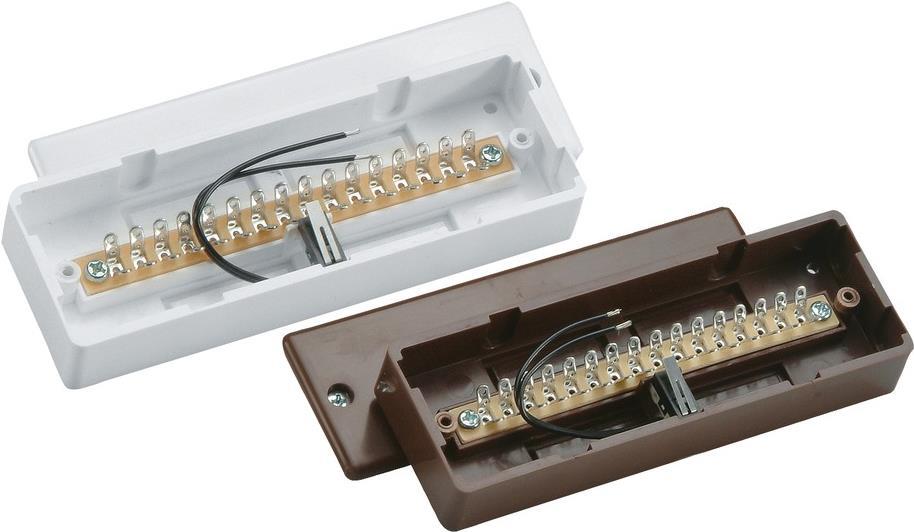 Der Aufputz-Lötverteiler ist durch einen Abdeckkontakt gegen Manipulationen geschützt. Der Verteiler ist aus schlagfestem Kunststoff gefertigt. Die Lötkontakte sind verzinnt und somit rostfrei. Der Aufputz-Lötverteiler ist VdS-zertifiziert.