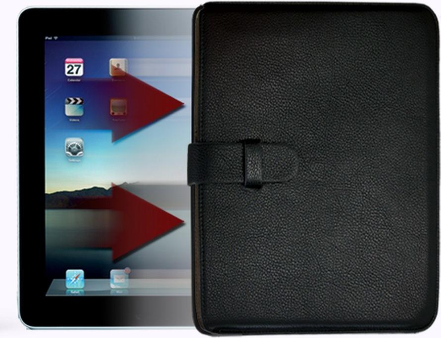 Diese passgenaue und elegante Tasche in Lederoptik aus widerstandsfähigem PU Material ist ideal zum dauerhaften Schutz Ihres iPads. Eine exklusive Lasche verhindert das Herausrutschen Ihres iPads beim Transport.