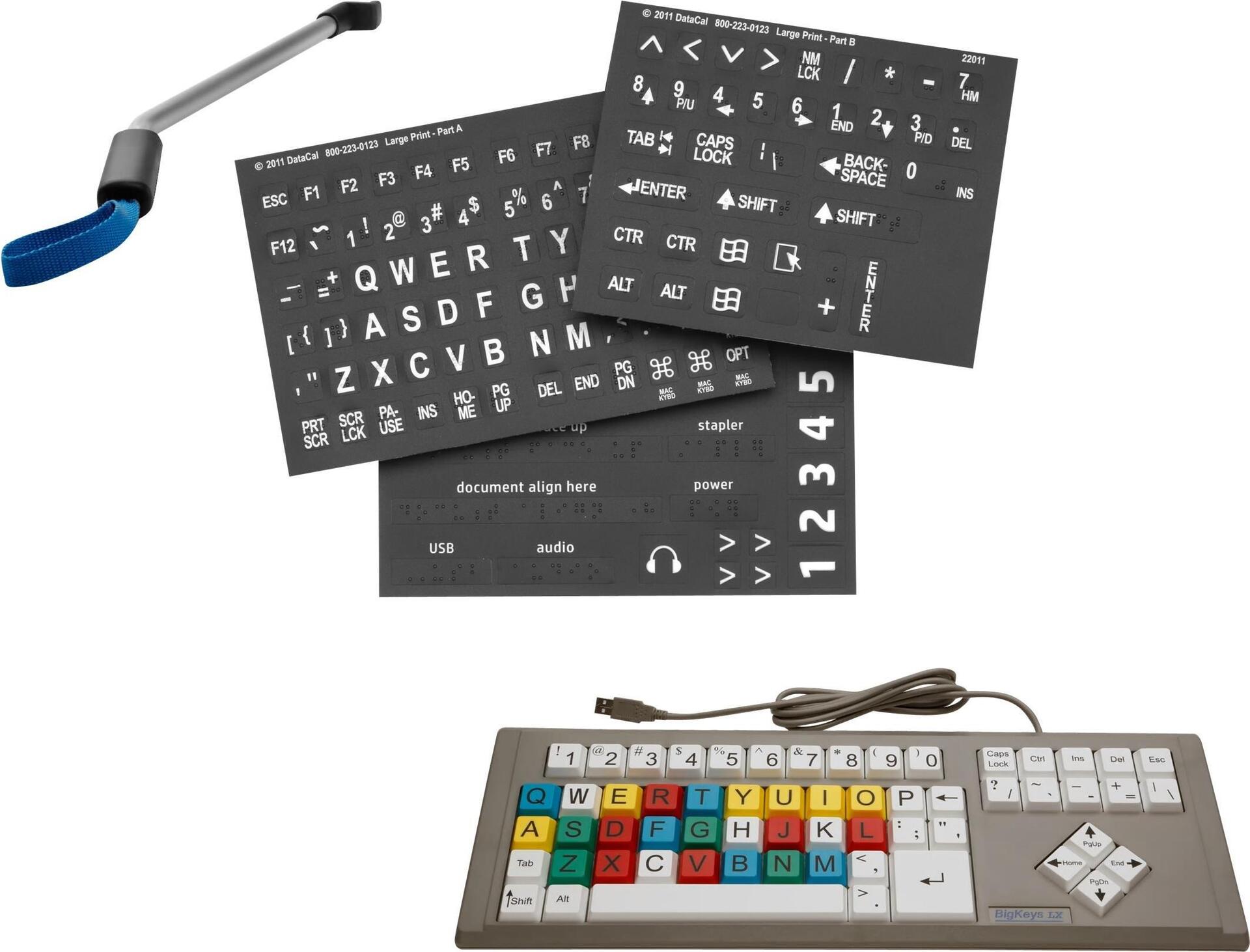 | Packungsinhalt | Klebeetiketten mit tastbarer Brailleschrift, Zugangsgriff, BigKeys LX Tastatur |