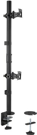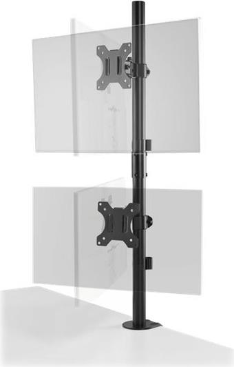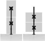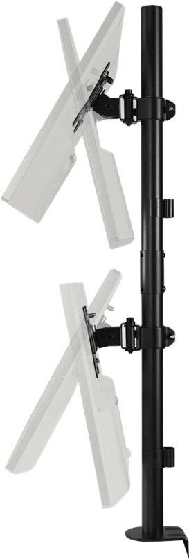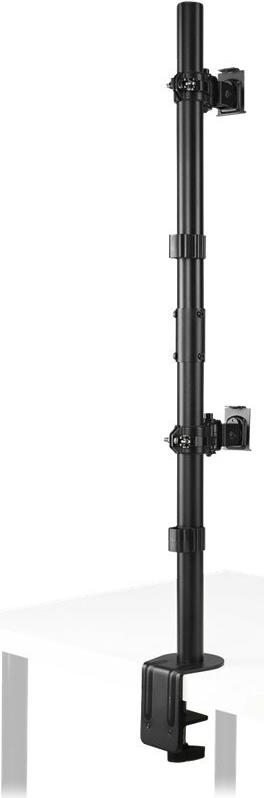 Der vertikale Dual Monitorarm bietet eine solide, stabile Anbringung von zwei Monitoren übereinander mit jeweils bis zu 32" (9 kg) und maximiert gleichzeitig die Arbeitsfläche. Ideal für Gaming. das Web-Browsing von oben nach unten, Kontrollräume oder überall dort, wo der Platz auf dem Schreibtisch begrenzt ist. Ein Schnellspanngriff bietet ein reibungsloses und müheloses Einstellen der Höhe des Monitors. Das einfach zu installierende und zu verwendende Full-Motion-Design ermöglicht die Positionierung des Monitors in jede Richtung. Abnehmbare, um ±180° drehbare VESA 75/100-Platten und eine vorinstallierte C-Klemme (optionale Tüllenbefestigung im Lieferumfang enthalten) bieten eine leicht zu installierende, stabile und sichere Basis. Integriertes Kabelmanagement für weniger Kabelgewirr.