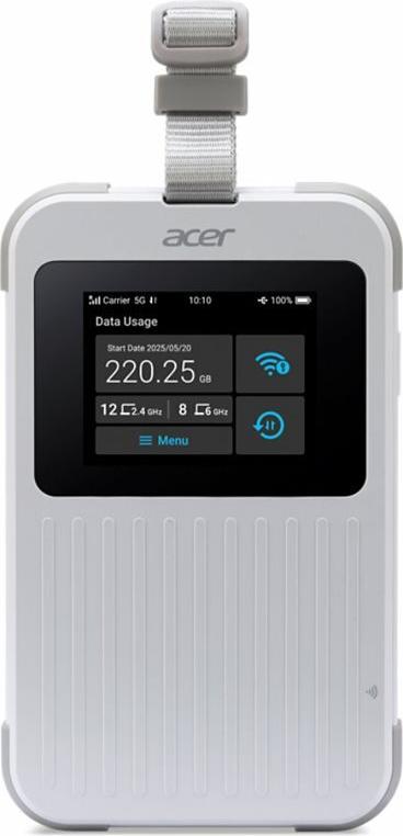 Der Acer Connect M6E verfügt über einen robusten Akku mit einer Kapazität von 8000 mAh, der eine lange Betriebsdauer für mobile Anwendungen gewährleistet. Ausgestattet mit einem integrierten 2,4-Zoll-Touchscreen-Display bietet er eine intuitive Benutzeroberfläche für eine einfache Navigation. Mit Unterstützung für 5G NR und LTE gewährleistet dieser mobile Hotspot einen schnellen und zuverlässigen Internetzugang. Darüber hinaus entspricht das robuste Design den Standards IP68 und MIL-STD-810H und ist somit für verschiedene Umgebungen geeignet. Dank der Möglichkeit, bis zu 20 Wi-Fi-Geräte anzuschließen, eignet er sich perfekt für die komfortable gemeinsame Nutzung des Internetzugangs durch mehrere Benutzer.