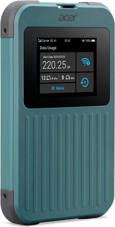 Der Acer Connect M4 wurde für mobile Konnektivität entwickelt und verfügt über einen Lithium-Ionen-Akku mit einer Kapazität von 8000 mAh, damit Sie auch unterwegs immer mit Strom versorgt sind. Ausgestattet mit einem 2,4-Zoll-Touchscreen-Display und 8 GB Flash-Speicher bietet er eine intuitive Benutzererfahrung und erleichtert den Zugriff auf Ihre Daten. Das Gerät entspricht den Normen IP68 und MIL-STD-810H und gewährleistet somit Langlebigkeit in verschiedenen Umgebungen, was es zu einem idealen Begleiter für Arbeit und Freizeit macht. Dieser mobile Hotspot unterstützt mehrere Mobilfunkprotokolle, darunter 5G NR, LTE und 4G LTE, und ermöglicht so die Konnektivität über verschiedene Netzwerke hinweg. Mit der Möglichkeit, bis zu 16 WiFi-Geräte gleichzeitig zu verbinden, verbessert das Connect M4 Ihr Netzwerkerlebnis. Darüber hinaus unterstützt er Dual-SIM-Funktionen, einschließlich eSIM, und bietet so flexible Verbindungsoptionen. Der im Lieferumfang enthaltene globale 1-GB-Datentarif sorgt dafür, dass Sie überall auf Reisen in Verbindung bleiben.