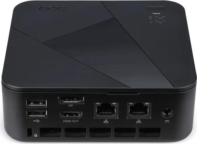 2x USB-A 3.0 (5Gb/?s), 1x HDMI, 1x DisplayPort, 2x RJ-45 (1000Base-T), 1x DC-In Hohlbuchse (Netzanschluss) |