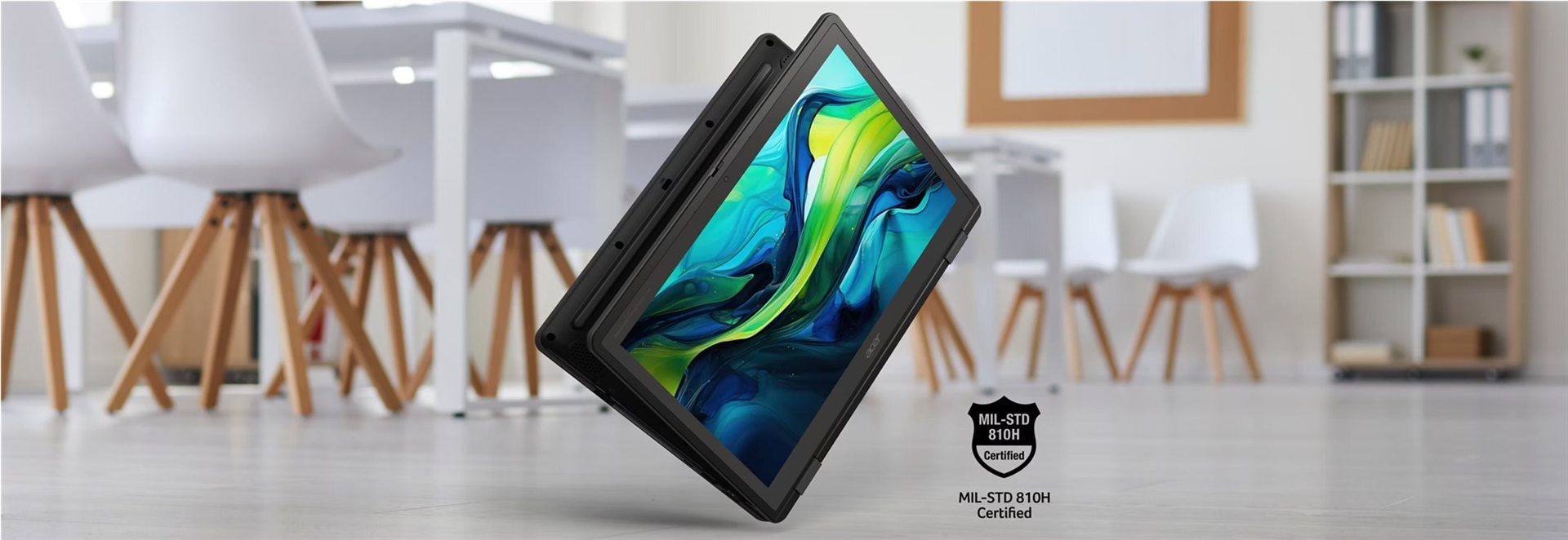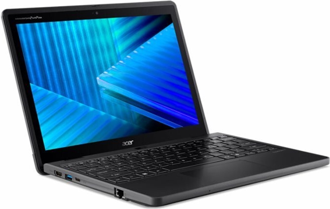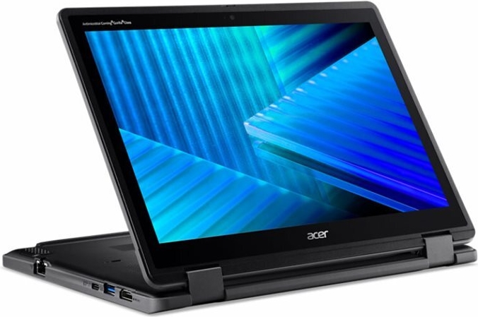 Das Acer TravelMate B3 Spin 12 ist auf Vielseitigkeit und Produktivität ausgelegt und verfügt über ein 360°-Flip-Design, das es Benutzern ermöglicht, einfach zwischen Laptop- und Tablet-Modus zu wechseln. Das Notebook verfügt über einen 12,2-Zoll-Full-HD-Touchscreen-Display mit einer Auflösung von 1920 x 1200 für gestochen scharfe Bilder und lebendige Farben. Das Display ist mit der Corning Gorilla Glass-Technologie ausgestattet und bietet Langlebigkeit und Kratzfestigkeit, wodurch es sich ideal für den täglichen Einsatz in verschiedenen Umgebungen eignet. Angetrieben von einem Intel N-Series Quad-Core-Prozessor sorgt das Acer TravelMate B3 Spin 12 für eine reibungslose Leistung, ergänzt durch 4 GB LPDDR5-RAM und eine 128 GB PCIe SSD für schnellen Datenzugriff und -speicherung. Das Gerät unterstützt außerdem mehrere Verbindungsoptionen, darunter HDMI, USB-C mit Power Delivery und Bluetooth 5.3, und gewährleistet so eine einfache Integration mit anderen Geräten. Mit seinem leichten Design und dem langlebigen Akku eignet sich dieses Notebook für Arbeit und Freizeit unterwegs.