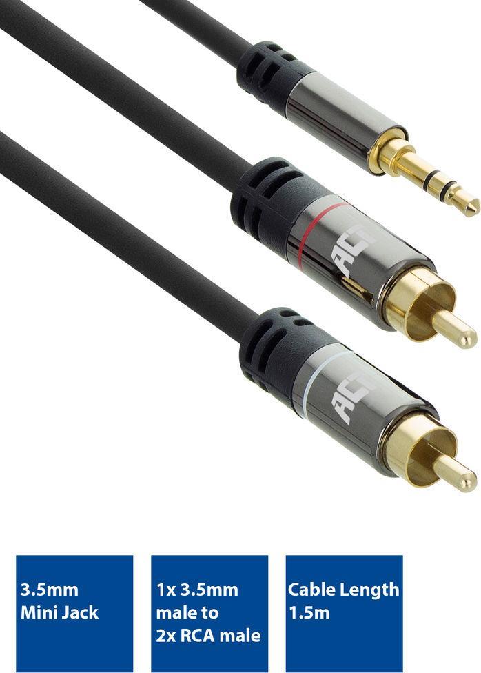 ACT 1.5 meter High Quality audio connection cable 1x 3.5mm stereo jack male - 2x RCA male (AC3605)