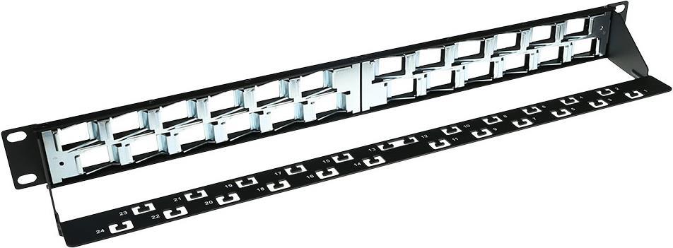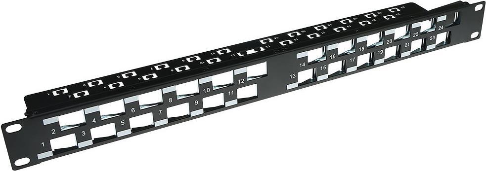 ACT 24 Port Keystone jack 45 degrees patch panel without connectors. Number of sockets: 24 24 port keystone panel 45 deg (PP1033)
