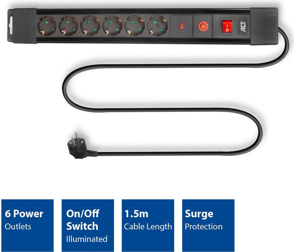 ACT AC2450 Spannungsschutz Schwarz 6 AC-Ausgänge 230 V 1,5 m (AC2450)