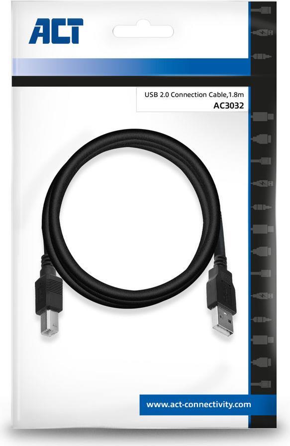 ACT AC3032 USB Kabel 1,8 m USB 2.0 USB A USB B Schwarz (AC3032)