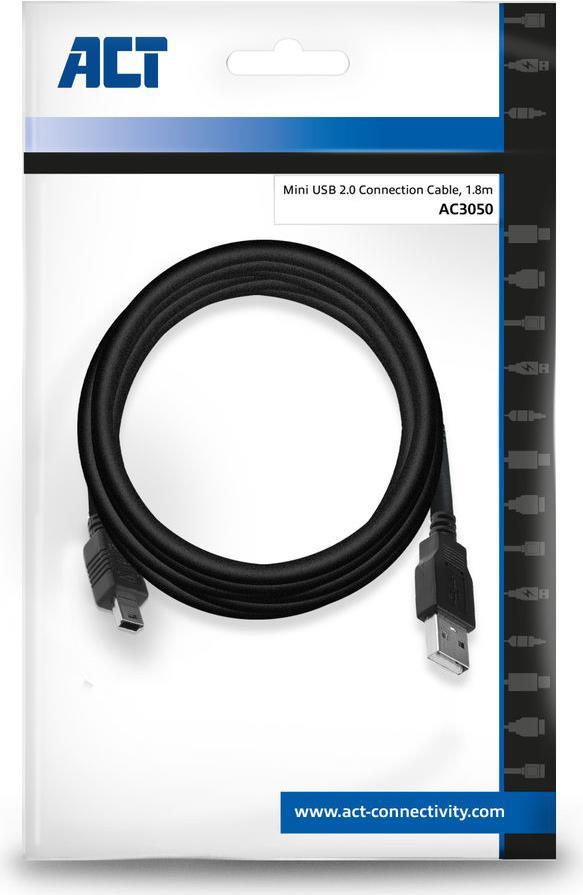 ACT AC3050 USB Kabel 1,8 m USB 2.0 USB A Mini-USB B Schwarz (AC3050)