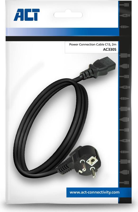ACT AC3305 Stromkabel Schwarz 2 m Netzstecker Typ F C13-Koppler (AC3305)