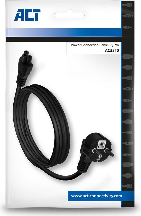 ACT AC3310 Stromkabel Schwarz 2 m CEE7/7 C5-Koppler (AC3310)