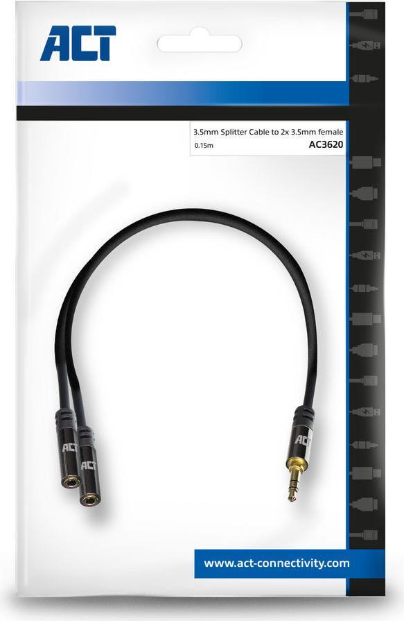 ACT AC3620 Audio-Kabel 0,15 m 3.5mm 2 x 3.5mm Schwarz (AC3620)