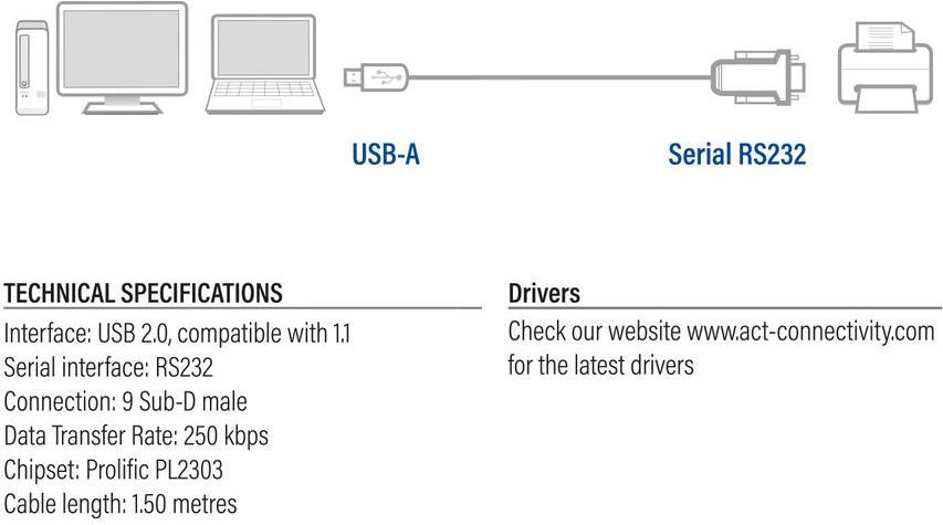 ACT AC6000 Serien-Kabel Schwarz 1,5 m USB Typ-A DB-9 (AC6000)