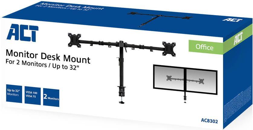 ACT AC8302 Flachbildschirm-Tischhalterung 81,3 cm (32" ) Klemme /Bolzen Schwarz (AC8302)