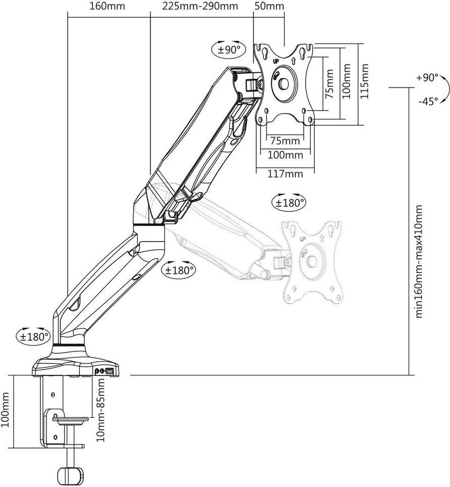 ACT AC8311 Flachbildschirm-Tischhalterung 81,3 cm (32" ) Klemme /Bolzen Schwarz (AC8311)
