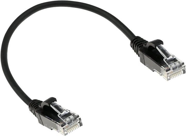 ACT Black 0.25 meter LSZH U/UTP CAT6 datacenter slimline patch cable with RJ45 connectors CAT6 U/UTP SLIMLINE BK 0.25M (DC9952)
