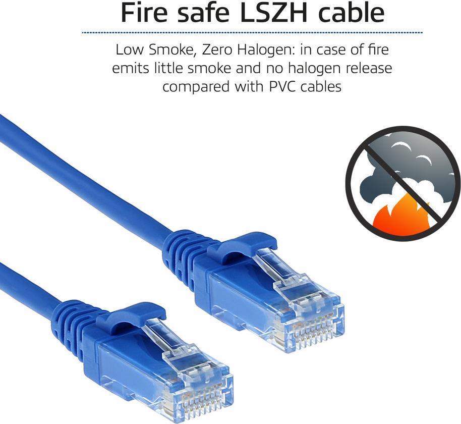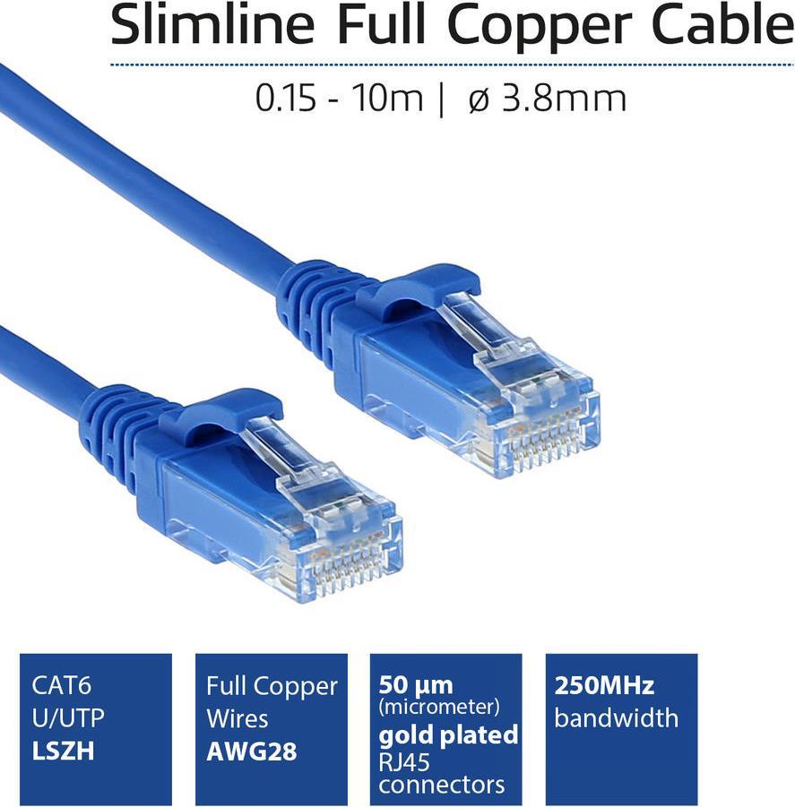 ACT Blue 10 meter LSZH U/UTP CAT6 datacenter slimline patch cable snagless with RJ45 connectors (DC9610)