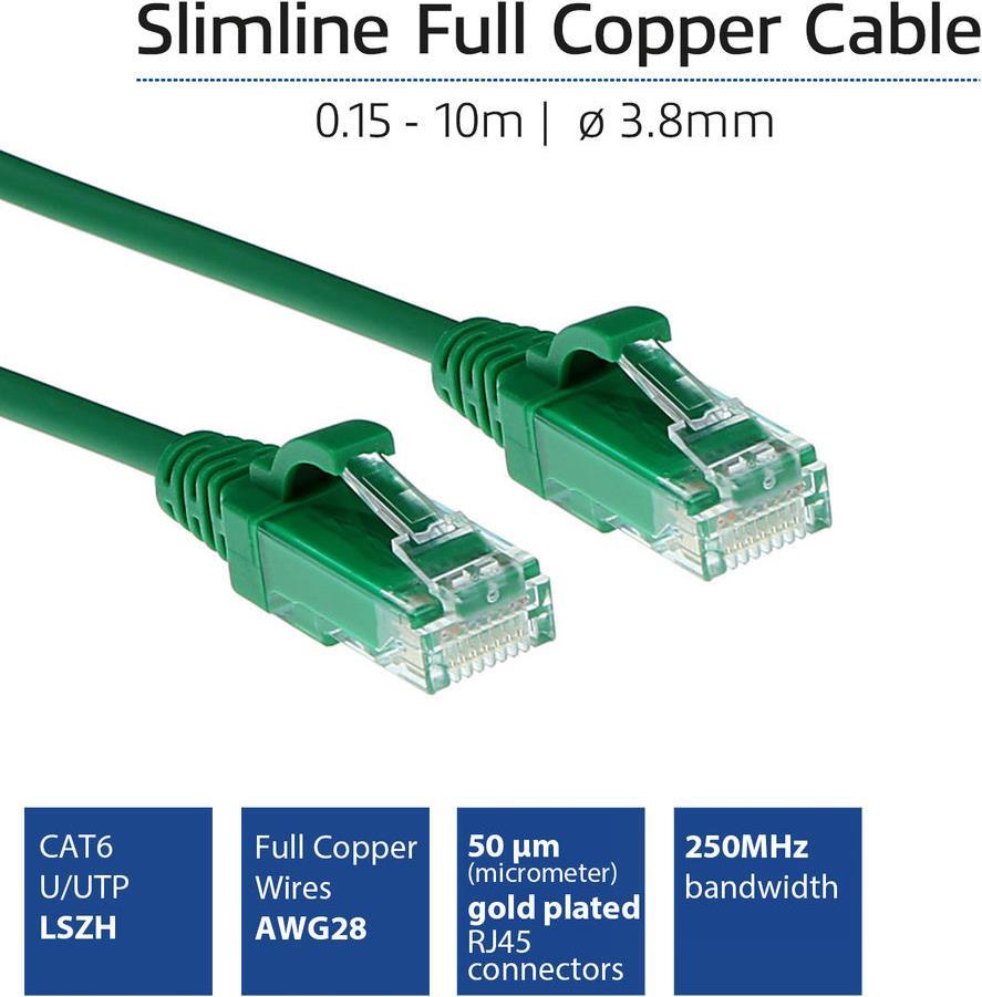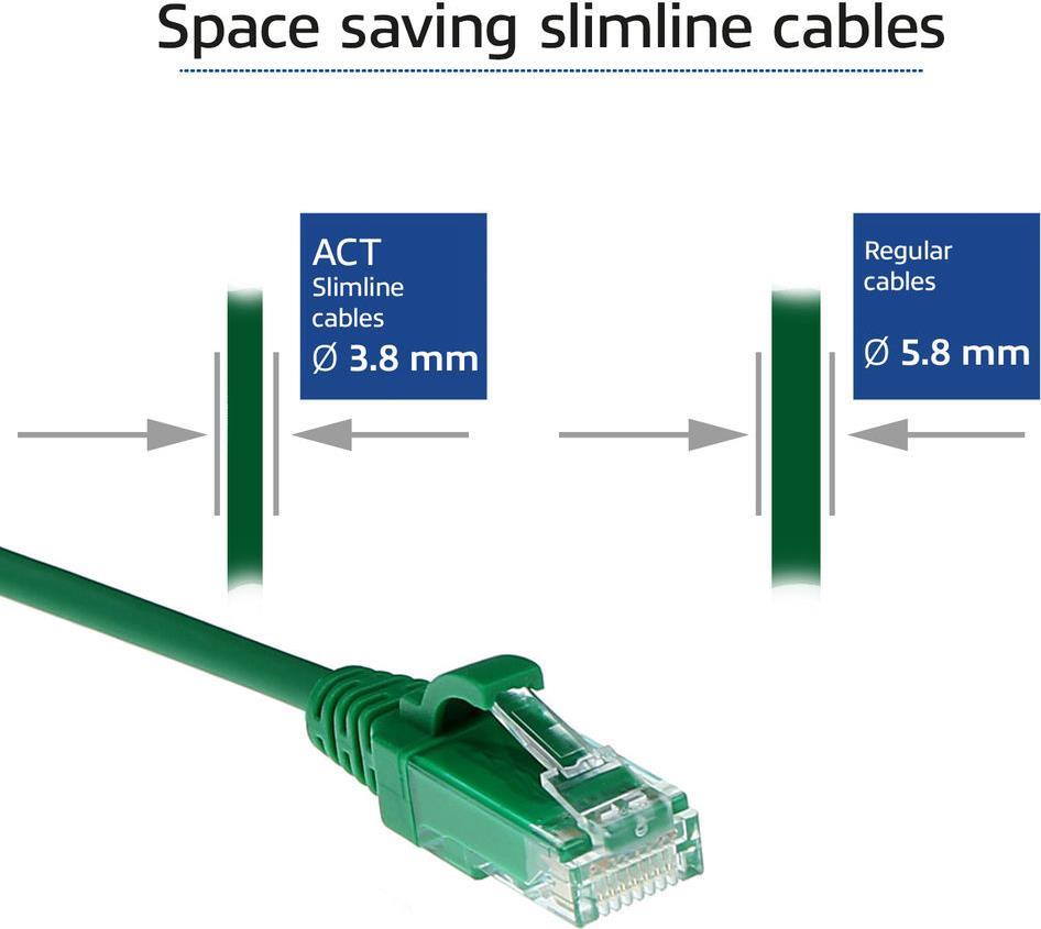 ACT Green 7 meter LSZH U/UTP CAT6 datacenter slimline patch cable snagless with RJ45 connectors (DC9707)