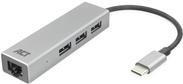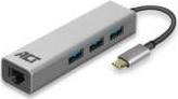 ACT Hub USB C 3.1 Gen1 (USB 3.0), 3 port, with 1 Gigabit network port, cable length 0.15m, aluminium housing USB-C - 3X USB-A, RJ45 GIGABIT (AC7055)