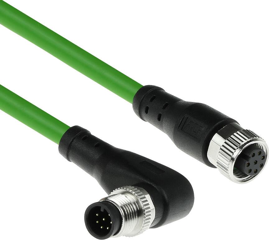 ACT Industrial 1.50 meters Sensor cable M12A 8-pin male right angled to M12A female, Ultraflex TPE cable, shielded (SC3941)