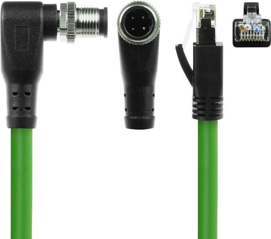 ACT Industrial 5.00 meters Sensor cable M12D 4-pin male right angled to RJ45 male, Superflex Xtreme TPE cable, shielded (SC4562)