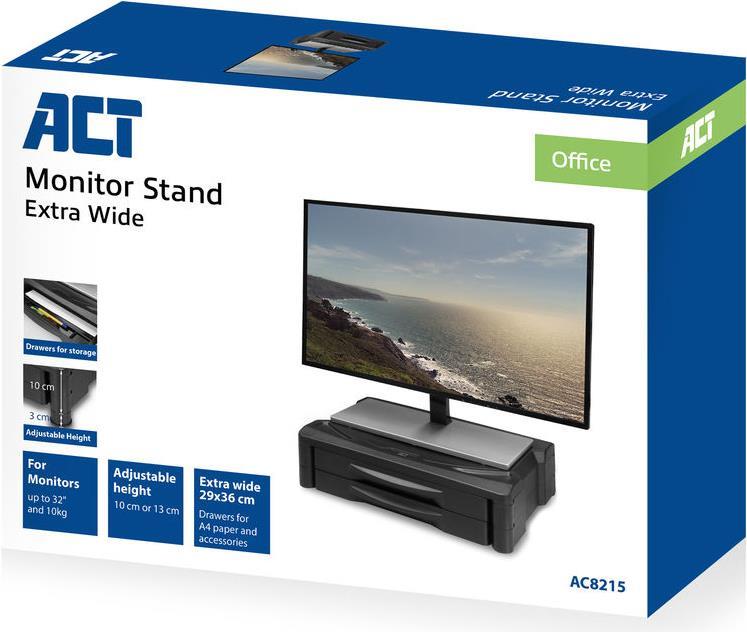 Der AC8215 Monitorständer hebt Ihren Monitor auf eine bequeme Höhe. Der Ständer unterstützt extra breite Monitore bis zu 81,30cm (32") und 10 kg. Sie können Ihren Monitor 10 oder 13 cm anheben. Verstauen Sie Papier, ...