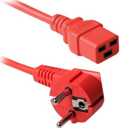 ACT Powercord mains connector CEE7/7 male (angled) - C19 red 0.60 m. Lengte: 0.6 m Powercord schuko-c19 red 0.60m (AK5167)