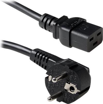 ACT Powercord mains connector CEE7/7 male (angled) - C19 black 1.20 m. Lengte: 1.2 m Powercord schuko-c19 blk 1.20m (AK5184)