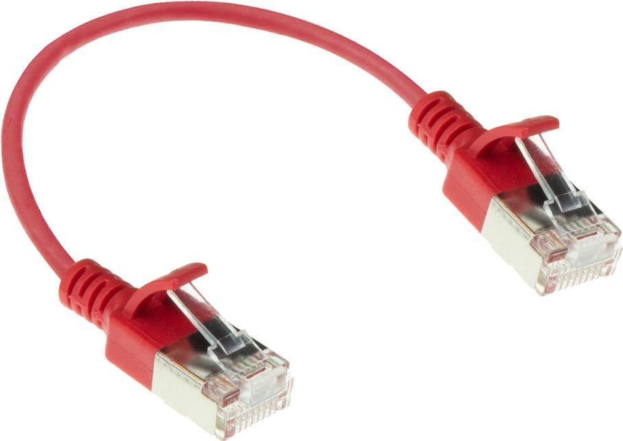 ACT Red 0.15 meter LSZH U/FTP CAT6A datacenter slimline patch cable snagless with RJ45 connectors (DC7530)