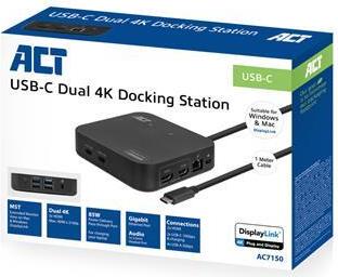 ACT AC7150 laptop-dockingstation & portreplikator Kabelgebunden USB 3.2 Gen 2 (3.1 Gen 2) Type-C Schwarz (AC7150)