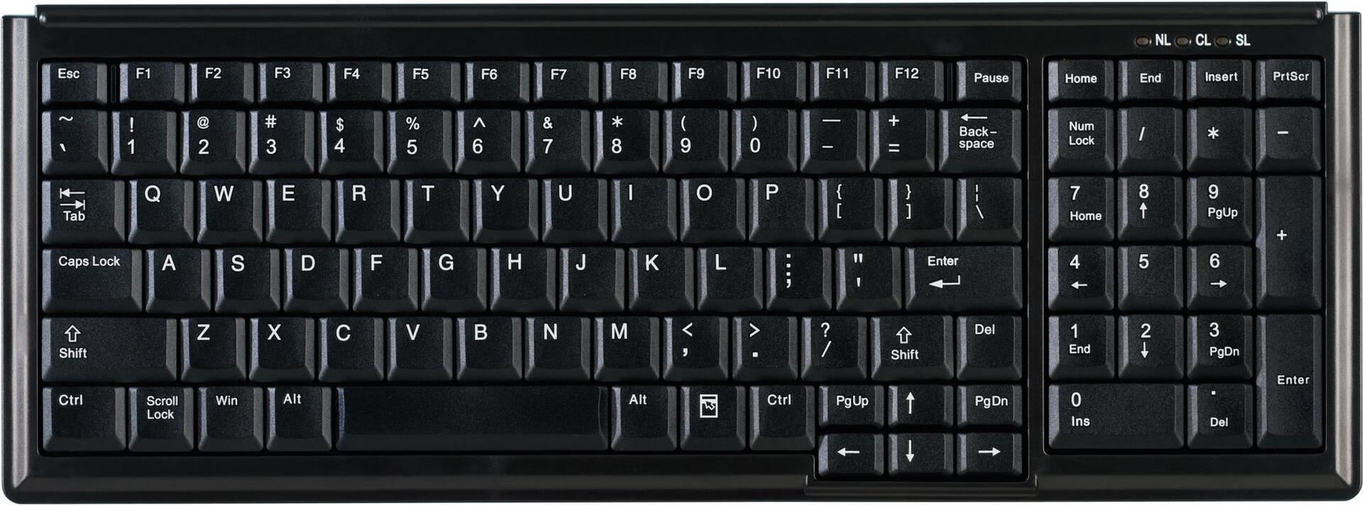 Die Tastaturen der Serie AK-7000 wurden speziell für den Einsatz in der Industrie, in Serverschubladen und im Kioskbereich entwickelt. Mit der niedrige Bauhöhe und den geringen Abmessungen lässt sich die Tastatur leicht integrieren. Durch die Verwendung der Scherentechnologie werden die Tastenknöpfe an den vier Außenpunkten geführt, was ein einzigartiges Betätigungsgefühl, selbst bei Betätigung an der Außenkante zur Folge hat. Die dadurch verbesserte Tastenführung ermöglicht die Realisierung einer herausragenden \"Soft-Druckpunkt\"-Charakteristik. Aufgrund des guten Tastgefühls, der kompakten Abmessungen und der niedrigen, ergonomische Bauhöhe, eignet sich die AK-7000 auch hervorragend zum Einsatz im Bürobereich.Produkttext[/head]Die Tastaturen der Serie AK-7000 wurden speziell für den Einsatz in der Industrie, in Serverschubladen und im Kioskbereich entwickelt. Mit der niedrige Bauhöhe und den geringen Abmessungen lässt sich die Tastatur leicht integrieren. Durch die Verwendung der Scherentechnologie werden die Tastenknöpfe an den vier Außenpunkten geführt, was ein einzigartiges Betätigungsgefühl, selbst bei Betätigung an der Außenkante zur Folge hat. Die dadurch verbesserte Tastenführung ermöglicht die Realisierung einer herausragenden “Soft-Druckpunkt”-Charakteristik. Aufgrund des guten Tastgefühls, der kompakten Abmessungen und der niedrigen, ergonomische Bauhöhe, eignet sich die AK-7000 auch hervorragend zum Einsatz im Bürobereich. Aufgrund der flachen, abgeschrägten Tasten, lässt sich die Tastatur sehr leicht reinigen.[head]Hauptmerkmale