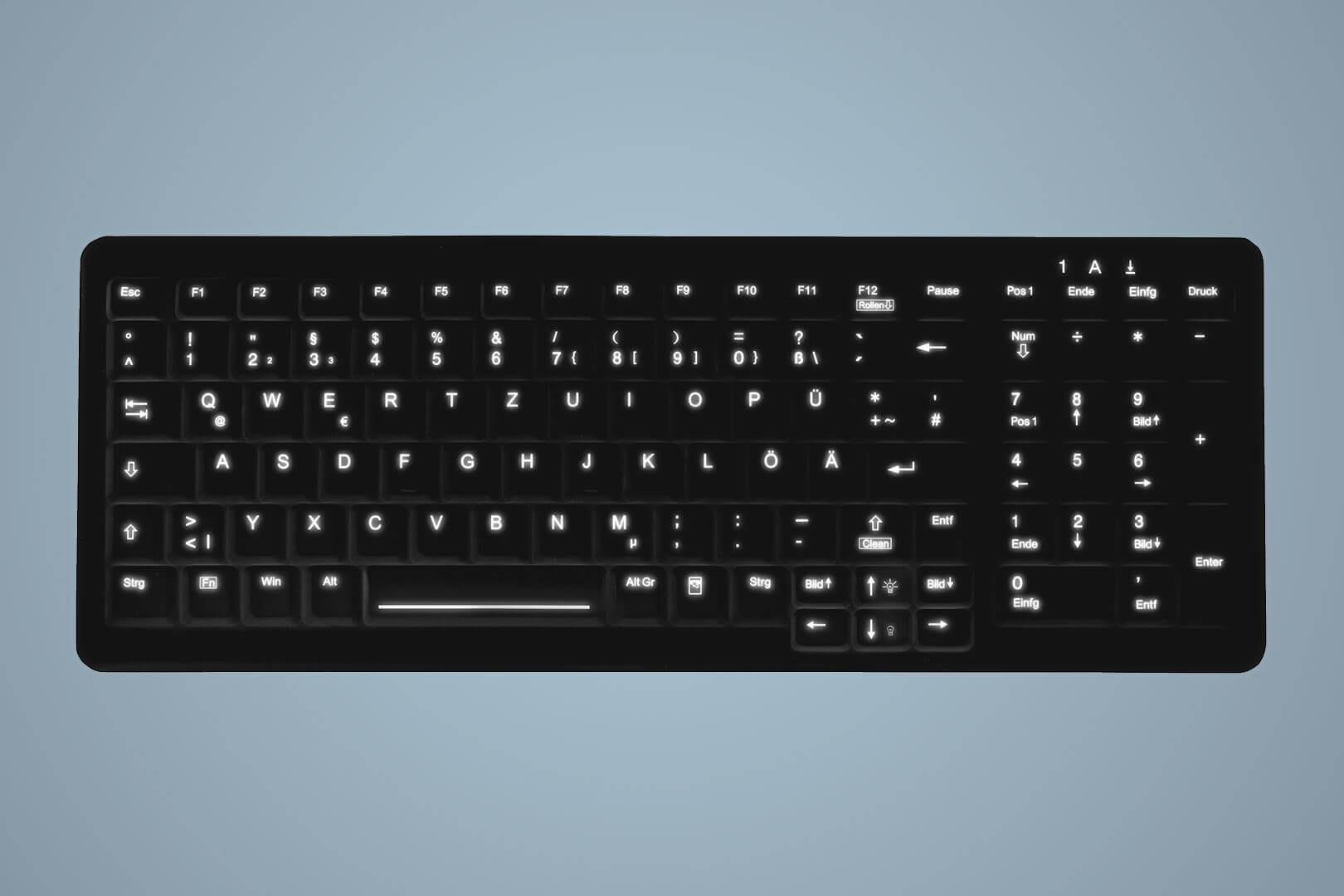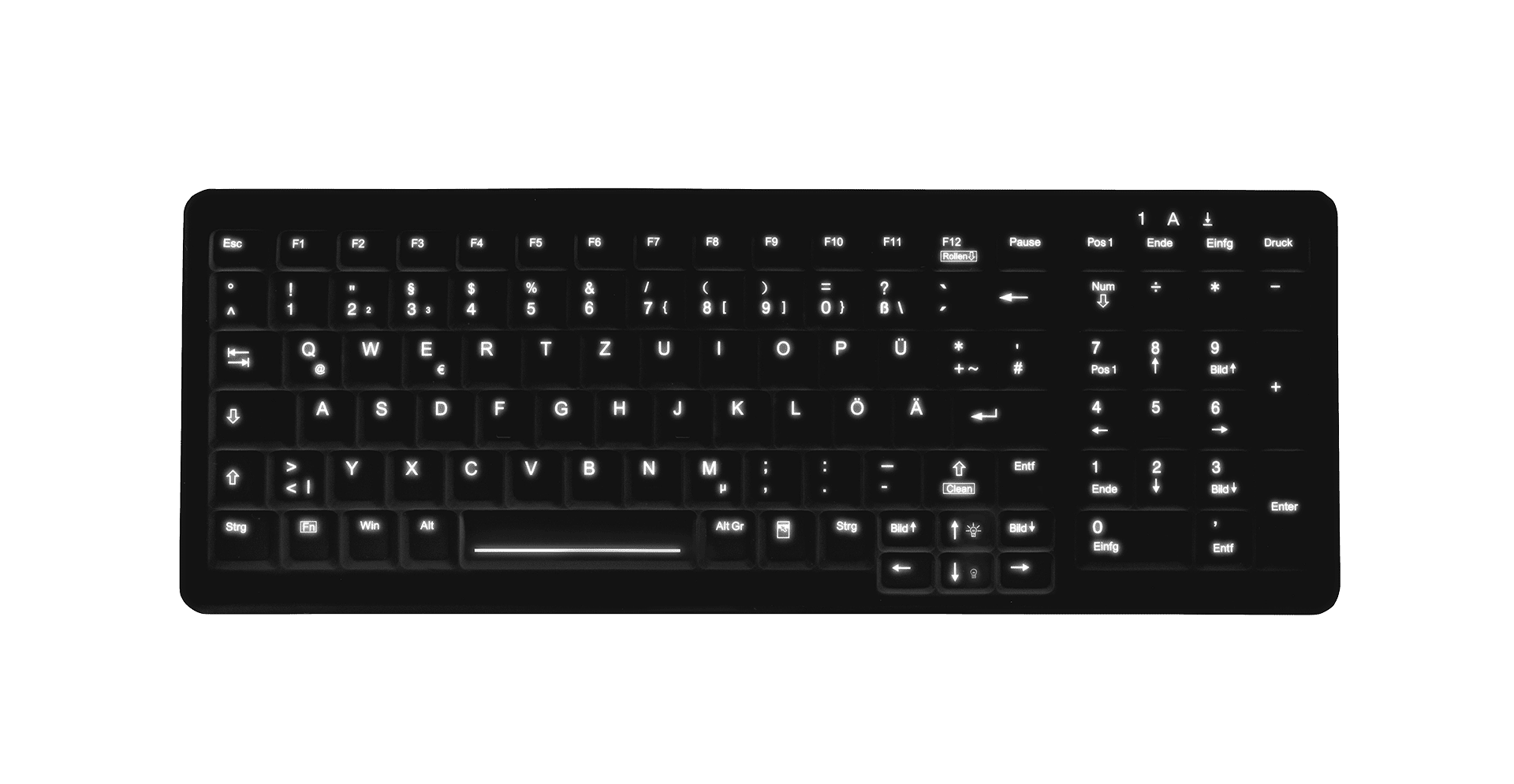 Die AK-C7000 ist eine hochwertige, äußerst zuverlässige Notebook-Tastatur. Durch ihre Reinigungs- und Desinfektionsfähigkeit ist sie perfekt geeignet für den Einsatz in Krankenhäusern und Arztpraxen, mikrobiologischen Labors sowie in der industriellen Umgebung. Die Silikon-Tastenmembran schützt das Tastenfeld vor dem Eindringen von Schmutz und Flüssigkeiten. Der AK-C7000 besticht durch präzise Tastenbetätigung und genaue Tastenführung. Er ist sehr empfehlenswert für schwere Schreibarbeiten in schmutz- und hygienekritischen Betrieben.Produkttext[/head]DESINFIZIERBARE BELEUCHTETE HYGIENE-TASTATUR MIT NUMMERNFELDDie beleuchtete Hygiene-Tastatur AK-CB7000 ist aufgrund ihrer Reinigungs- und Desinfektionsfähigkeit besonders für den Einsatz in Krankenhäusern, Arztpraxen und mikrobiologischen Laboren, sowie in Industrie- und Verwaltungsanwendungen geeignet. Durch die Hintergrundbeleuchtung kann sie sehr gut in dunkler Umgebung verwendet werden.Die Silikonmembran schützt das Tastenfeld gegen Eindringen von Schmutz und Flüssigkeiten. Dank des leichten Tastenanschlags und der präzisen Tastenführung ist die AK-CB7000 für den Einsatz in hygienekritischen Umgebungen unbedingt zu empfehlen.[head]Hauptmerkmale