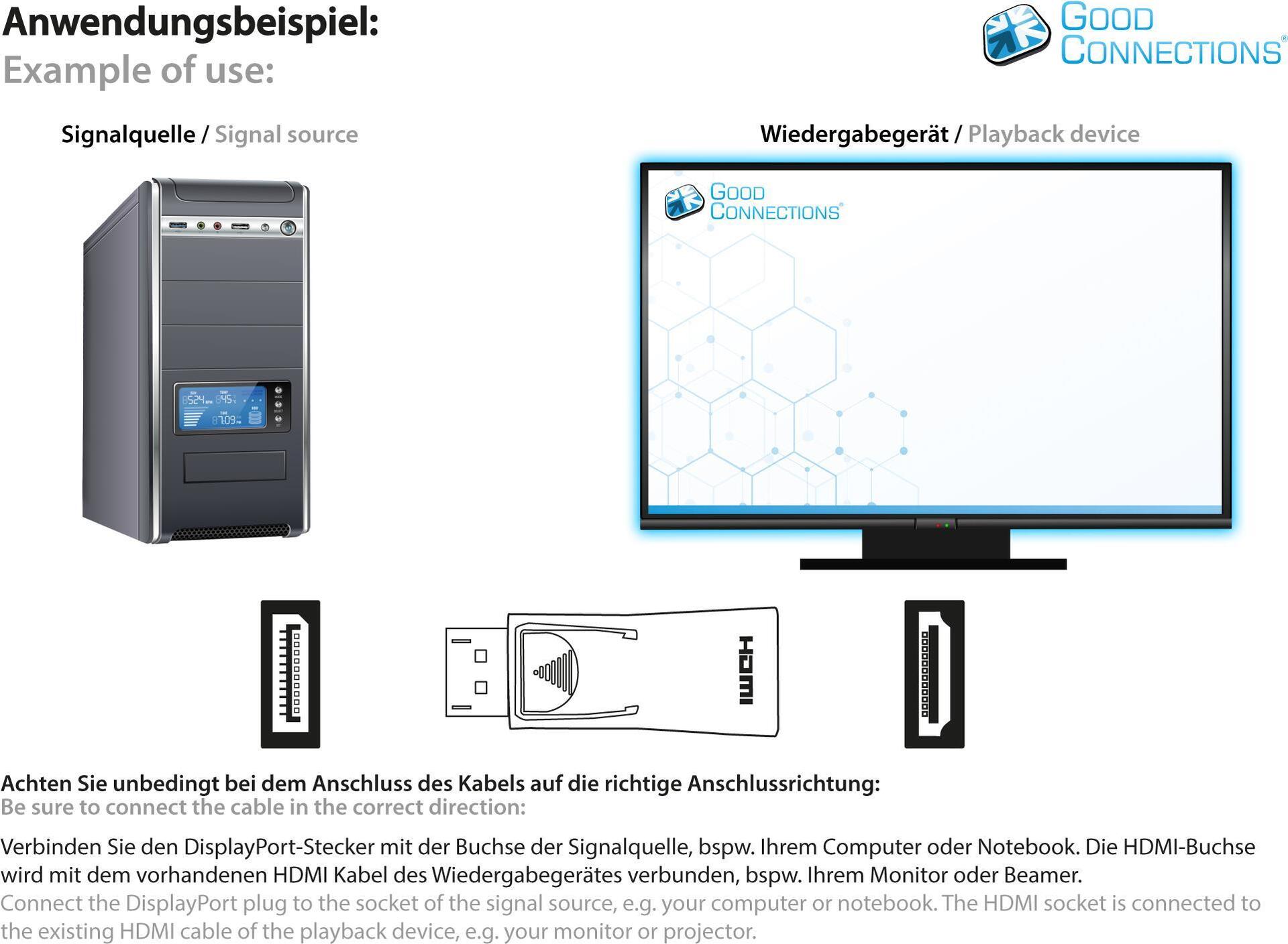 Der DisplayPort 1.4 an HDMI 2.0 Adapter von Good Connections® ermöglicht eine gleichbleibend hohe Signalübertragung bis 4K / UHD @60Hz dank der Kombination aus einem hochwertigen Aufbau und vergoldeten Kontakten. Der ...