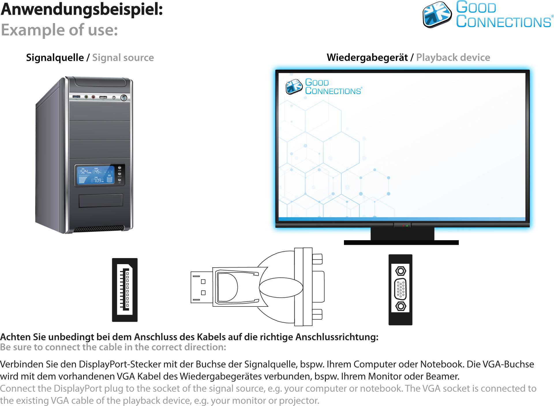 Adapter DisplayPort Stecker an VGA Buchse, 1920*1200 @60Hz, vergoldete Kontakte, Good Connections (DP-AD12)