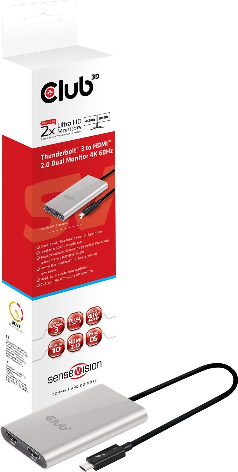 Mit dem Thunderbolt 3 to HDMI Dual Monitor 4K 60 Hz können Benutzer zwei HDMI Bildschirme problemlos an jedes Gerät mit einer Thunderbolt 3 Schnittstelle anschließen. Dieser einzigartige Adapter ist sowohl mit Mac OS Sierra als auch mit Windows 10 kompatibel. Die unterstützte Ausgabeauflösung beträgt bis zu 4K @ 60 Hz für Single Screen und Dual Screen Setups. Es ist voll Plug & Play, also keine Notwendigkeit für Treiberinstallation. Dieser stilvolle Adapter hat ein schönes gebürstetes Aluminiumgehäuse, das es stark und leicht macht.