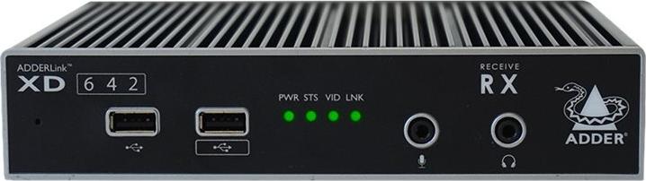 Der ADDERLink XD642 ist ein hochleistungsfähiger KVMA-Extender (Keyboard, Video, Mouse and Audio), der einen zuverlässigen Echtzeit-Zugang zu wichtigen Computern ermöglicht - unabhängig vom Standort und unter Beibehaltung der gleichen Benutzeroberfläche.