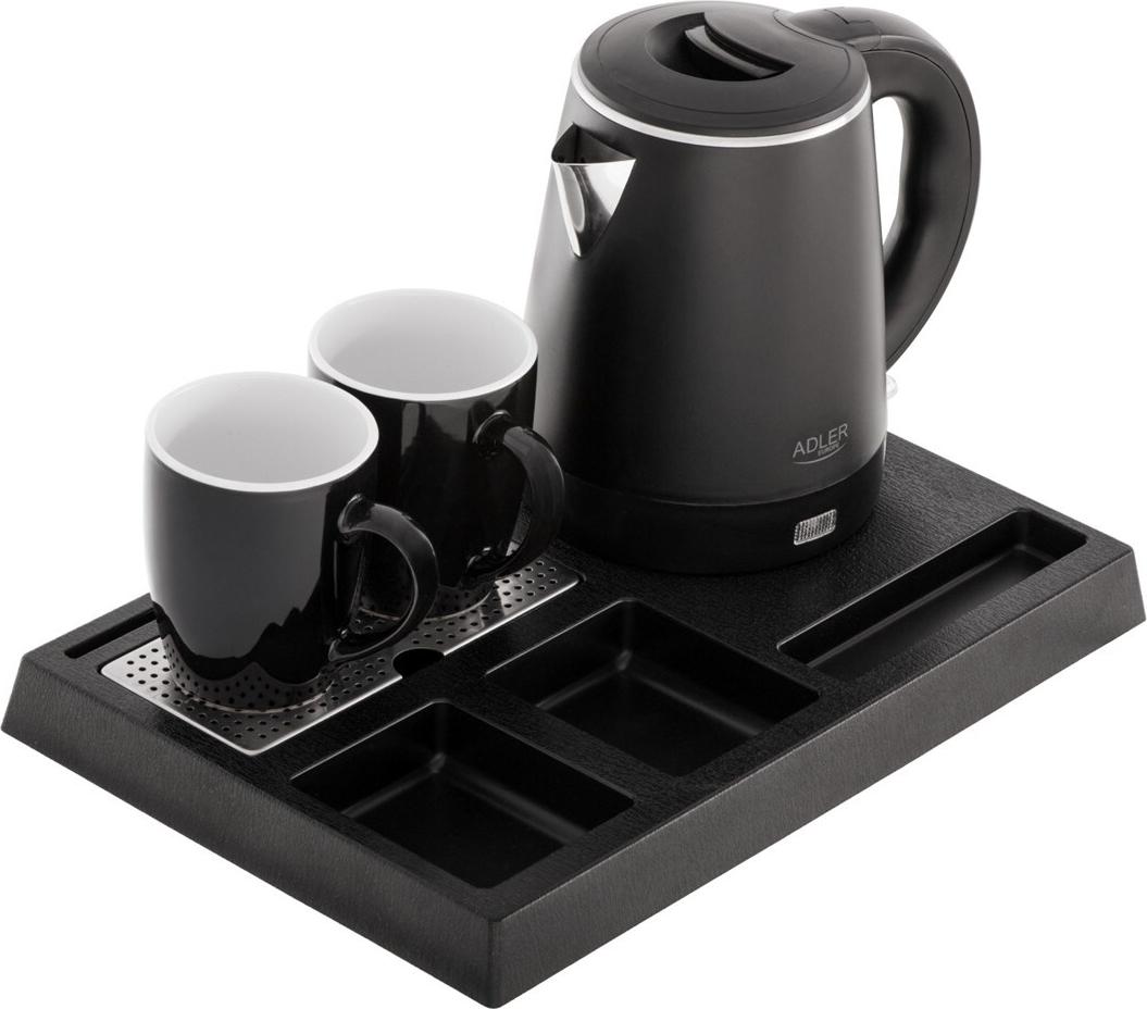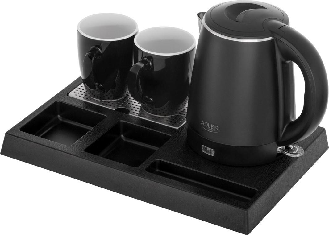 Adler AD 1387 Hotellwasserkocher aus Edelstahl 1 l + Tablett mit Tassen schwarz (AD 1387)