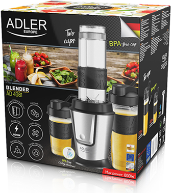Adler Standmixer AD 4081, 800 W, Behältermaterial BPA-frei, Behälterinhalt 0,57 und 0,4 l, Zerkleinern von Eis, Schwarz/Edelstahl (AD 4081)