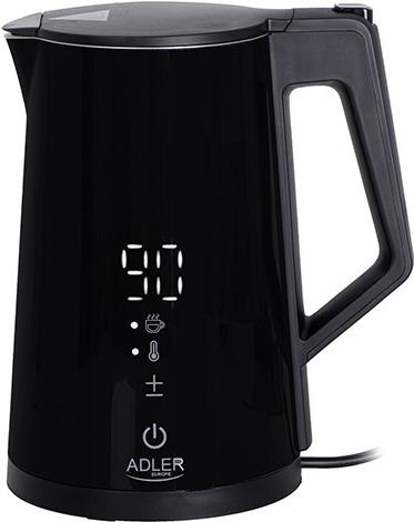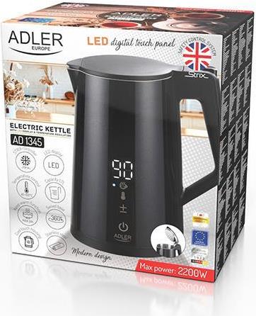 Adler Wasserkocher AD 1345b elektrisch, 2200 W, 1,7 l, Edelstahl, 360° drehbarer Sockel, schwarz (AD 1345 BLACK)