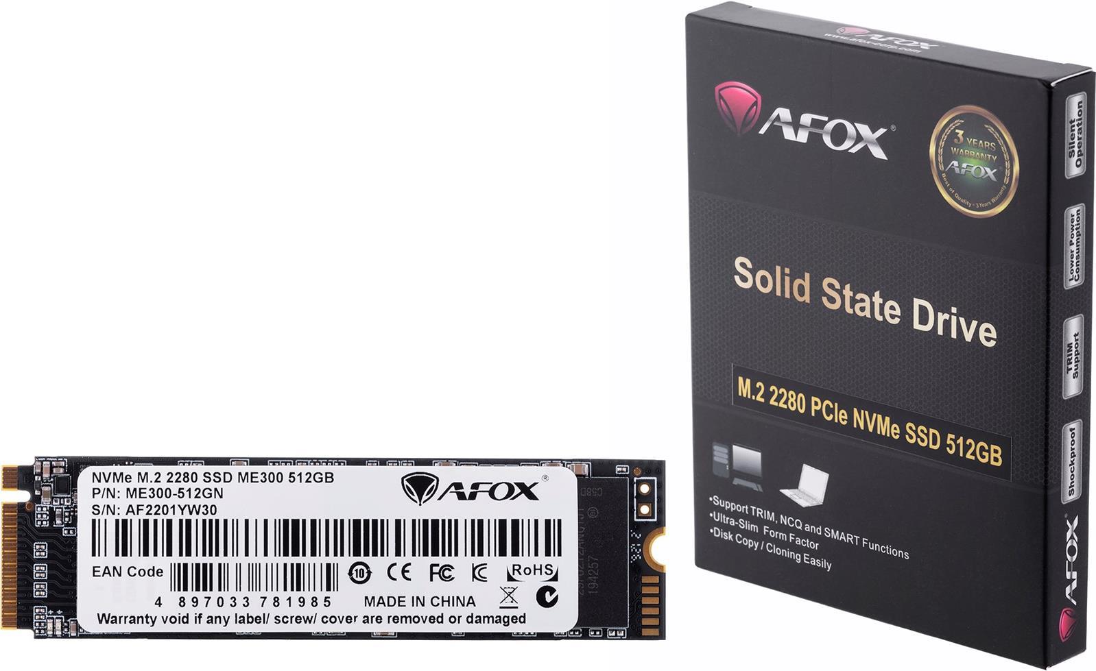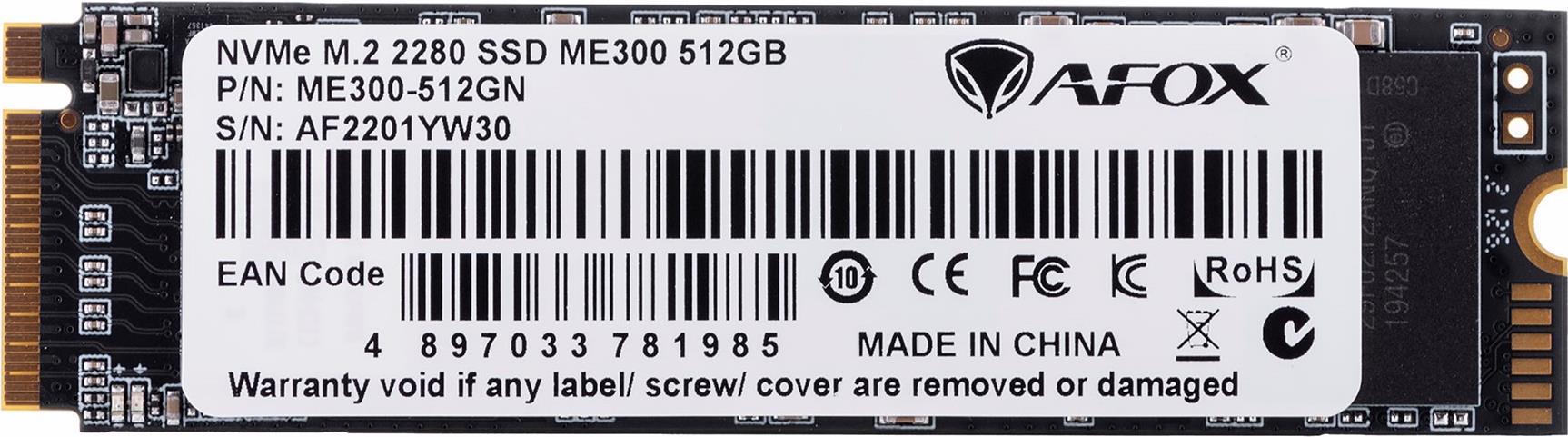AFOX ME300-512GN Internes Solid State Drive M.2 512 GB PCI Express 3.0 3D NAND NVMe (ME300-512GN)